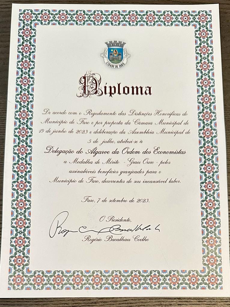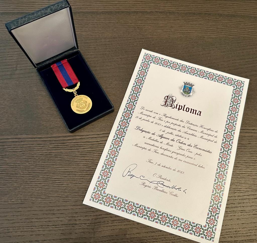 A Delegação Regional do Algarve da Ordem dos Economistas foi distinguida, no dia 07 de setembro, com a Medalha de Mérito – Grau Ouro, atribuída pelo Município de Faro.